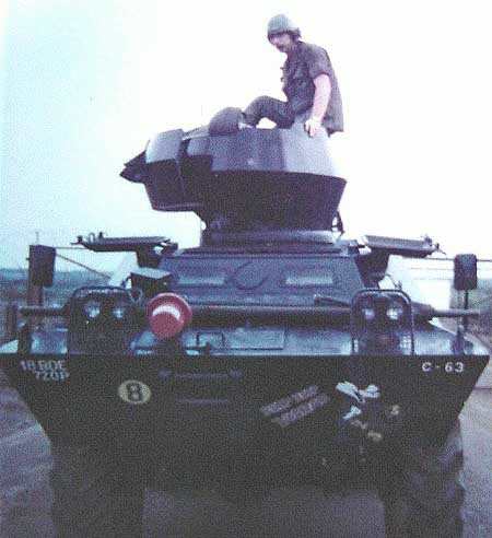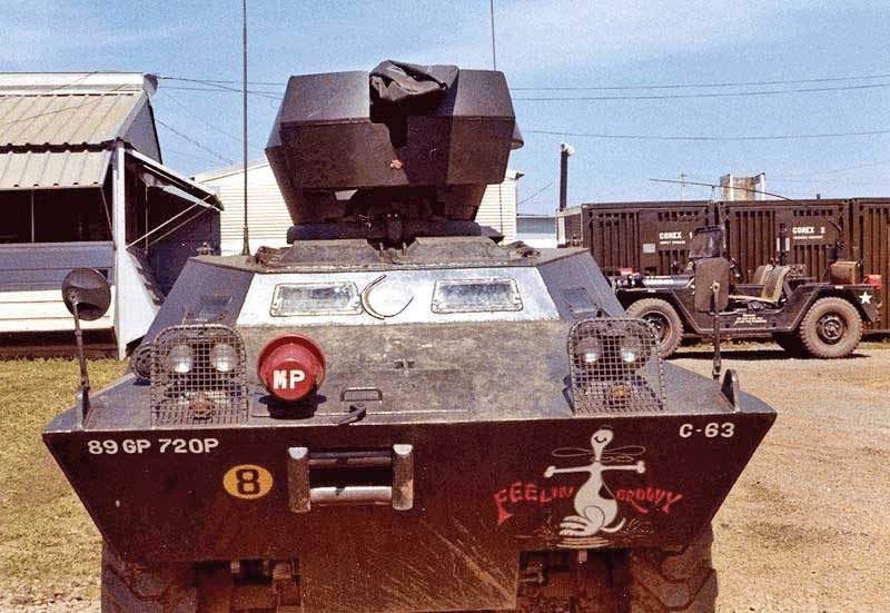 V-100 with XM-174 automatic grenade launcher - One of the chief complaints to V-100 from the ARVN users was that the twin .30 cal. MG’s did not deliver enough firepower. US Army and Cadillac Cage developed a quick solution to the problem in the for of retrofit kit that would convert existing twin .30 MG’s to a combination .30/.50 turret. The retrofit kit increased the deliverable firepower, but ATAC wanted to further it with the use of the automatic 40mm grenade launcher. The XM-32 turret system was developed by the army and tested in later 1966-67, but it failed to meet requirements.