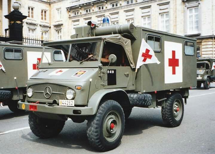Unimog S 404 Krankenwagen The payload of one and half tons made it possible to successfully use the Unimog S as an ambulance (Krankenwagen). Such vehicles were built using standard closed bodies in various versions. The interior of the bodies could be adapted to meet different needs - four stretchers with patients, or to combine stretchers and seats. Wide doors in the rear of the body facilitated the process of loading stretchers inside. Due to their excellent cross-country ability and good performance, these vehicles were in service with the Bundeswehr for many years (about 2000 built).