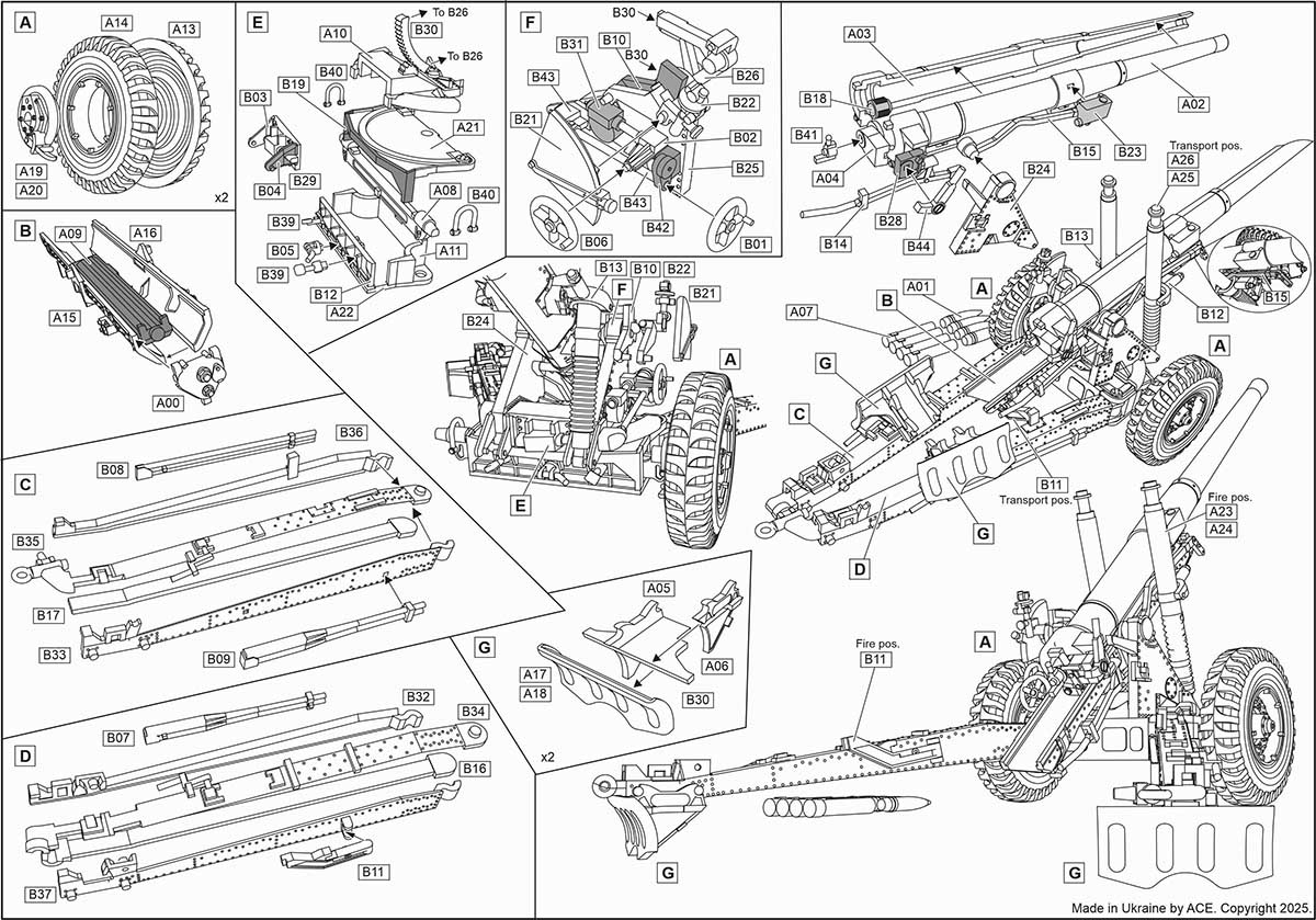 Модель: Ordance, B.L. 4,5 дюйми польова гармата Mk.2 на шасі 5,5 дюймовки Mk.2 |